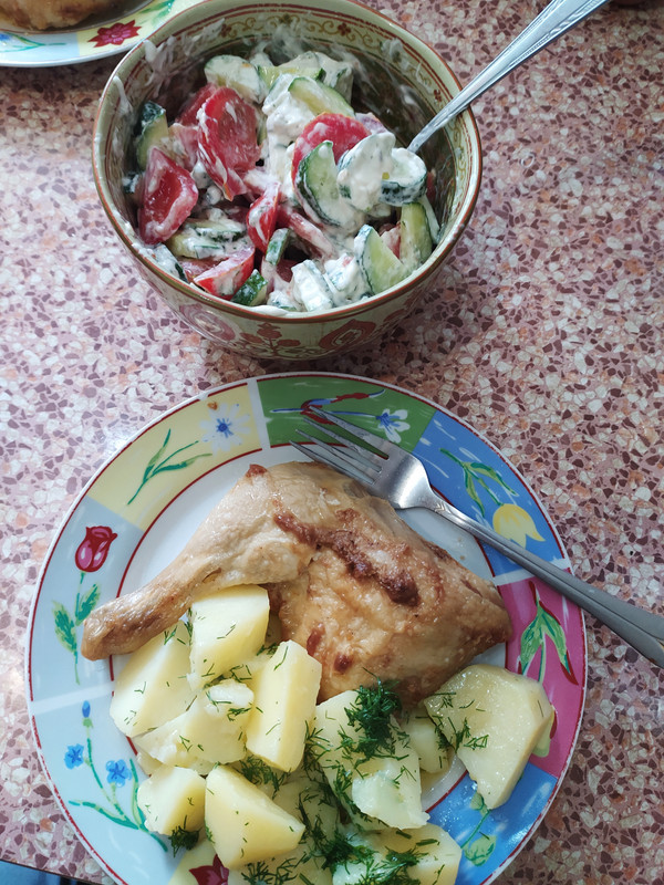 Вчера и сегодня "кошачья радость" путассу жареная, к ней картошка иэв мундире ( микроволновки в помощь) ну и овощные салаты каждый день разные.У нас не печет т т т но дождики, грозы и Т 25-28 днём. Так что тоже как то тоже на подвиги у плиты не тянет.Ещё горячая вода до 27 в отпуск ушла, Греем для мытья себя, не хочется лишнего жара.
