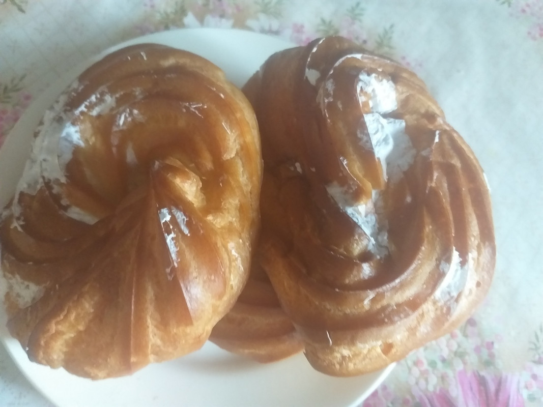 К чаю булочки со сливочным кремом (его много внутри). Ещё Диму отправила за мороженым. Принёс мне клубничное, а себе шоколадное...