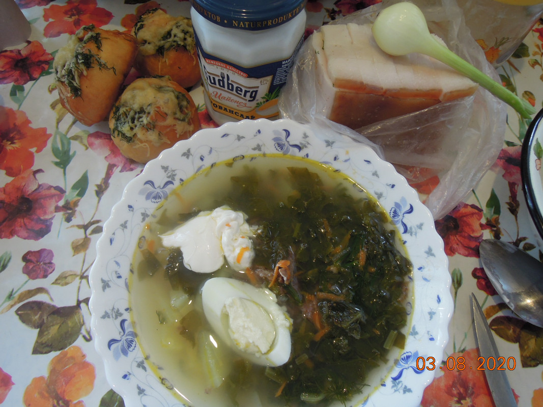 Так как я ем 2 раза в день, второй приём пищи можно назвать или обедом или ужином)))Сегодня обед, сварила суп из щавеля, ела и урчала от удовольствия. На тушёнке "Белорусский фермер", какая она классная, несколько лет не ела консервы, а в этот суп то надо именно её. Мясо куски, жира почти нет...Рекомендую!!