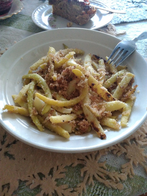 У нас тоже фасоль, но не с сухарями, а с перцем и помидорами.