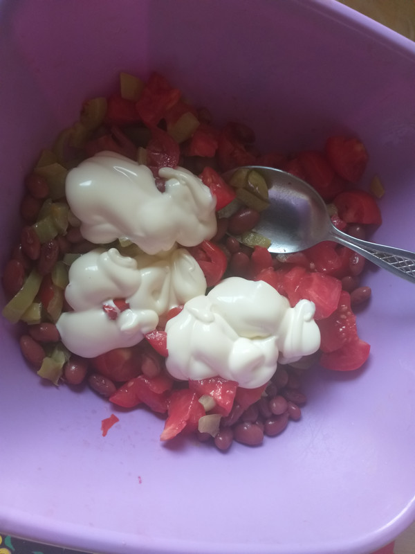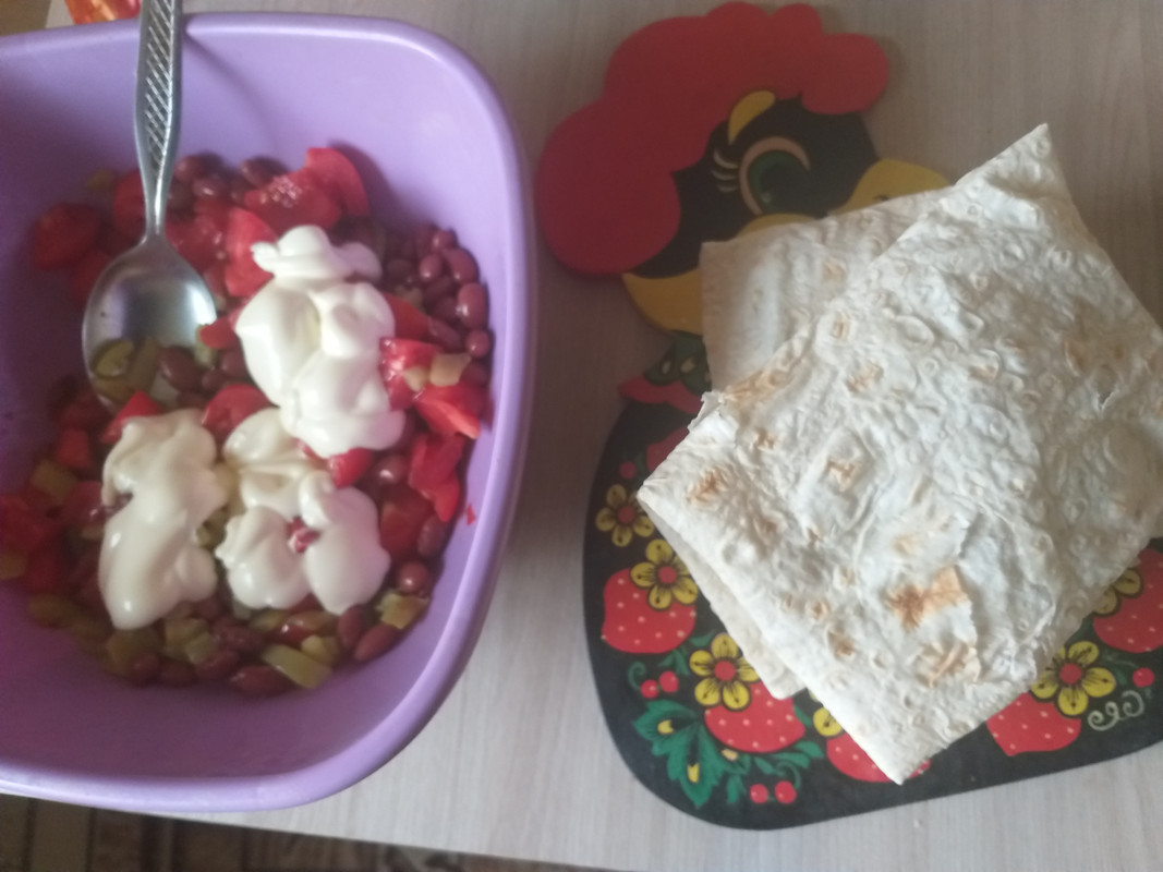 Еще сделаю, наверно, салат с болгарским перцем, помидорами и консервированной фасолью.