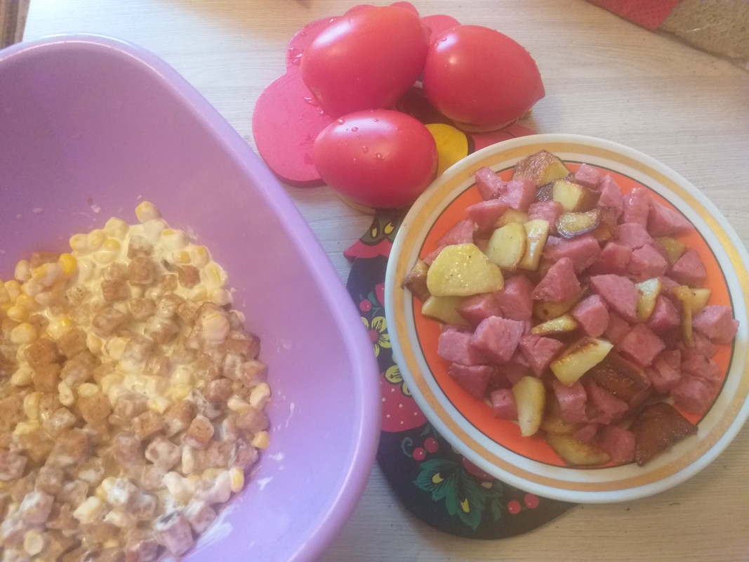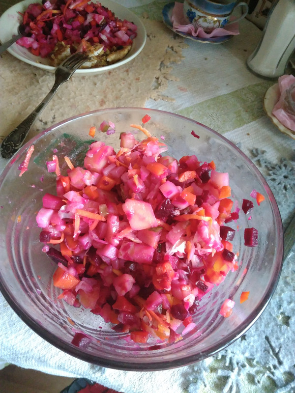 Салатница большая и глубокая, а мы с Димой вдвоем только, поэтому я сделала пол салатницы...