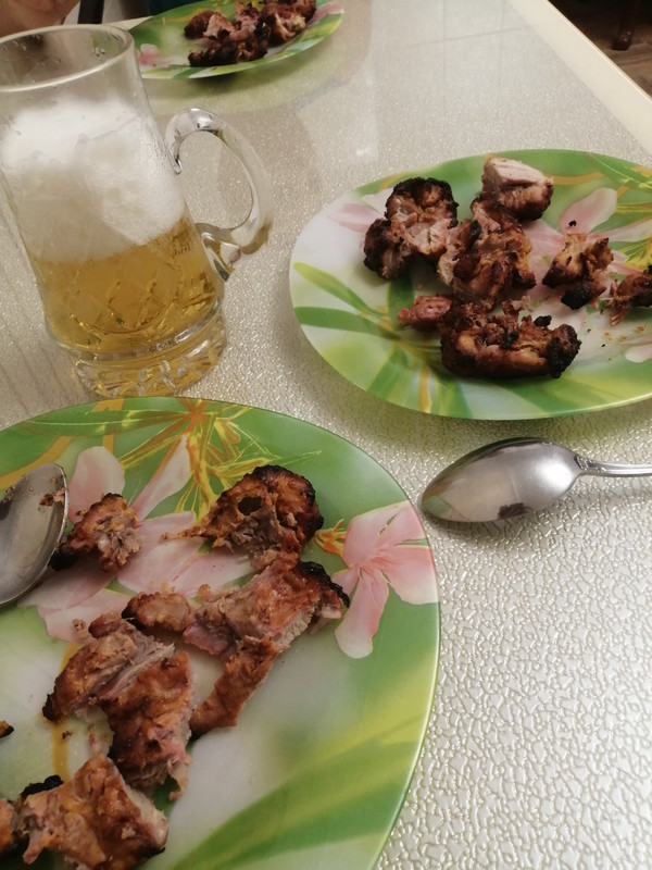 Шашлык из курицы на гриле, для меня пиво безалкагольное.