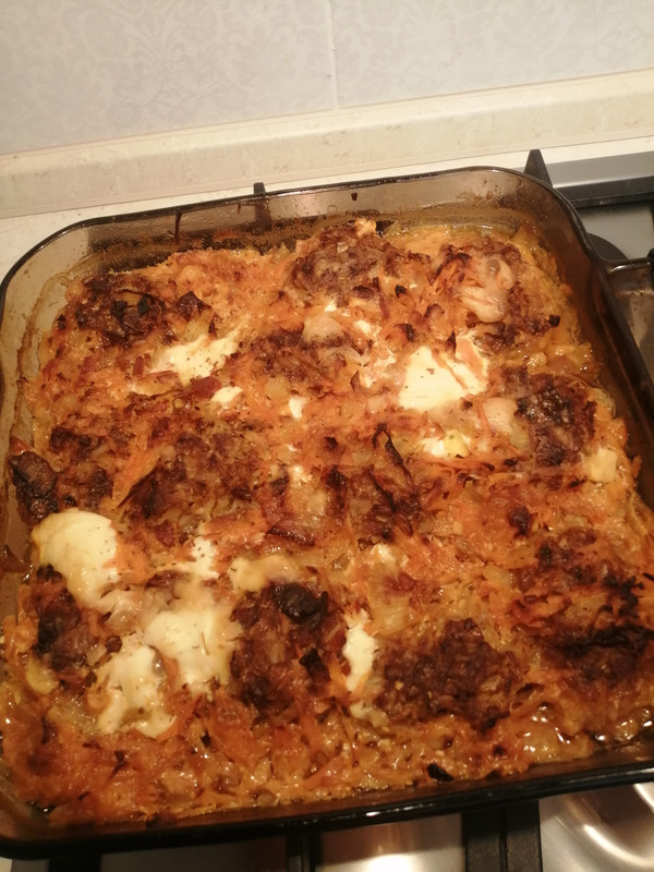 Ленивые голубцы с зажарочкой, печенье свое с арахисовой пастой, мандарины.