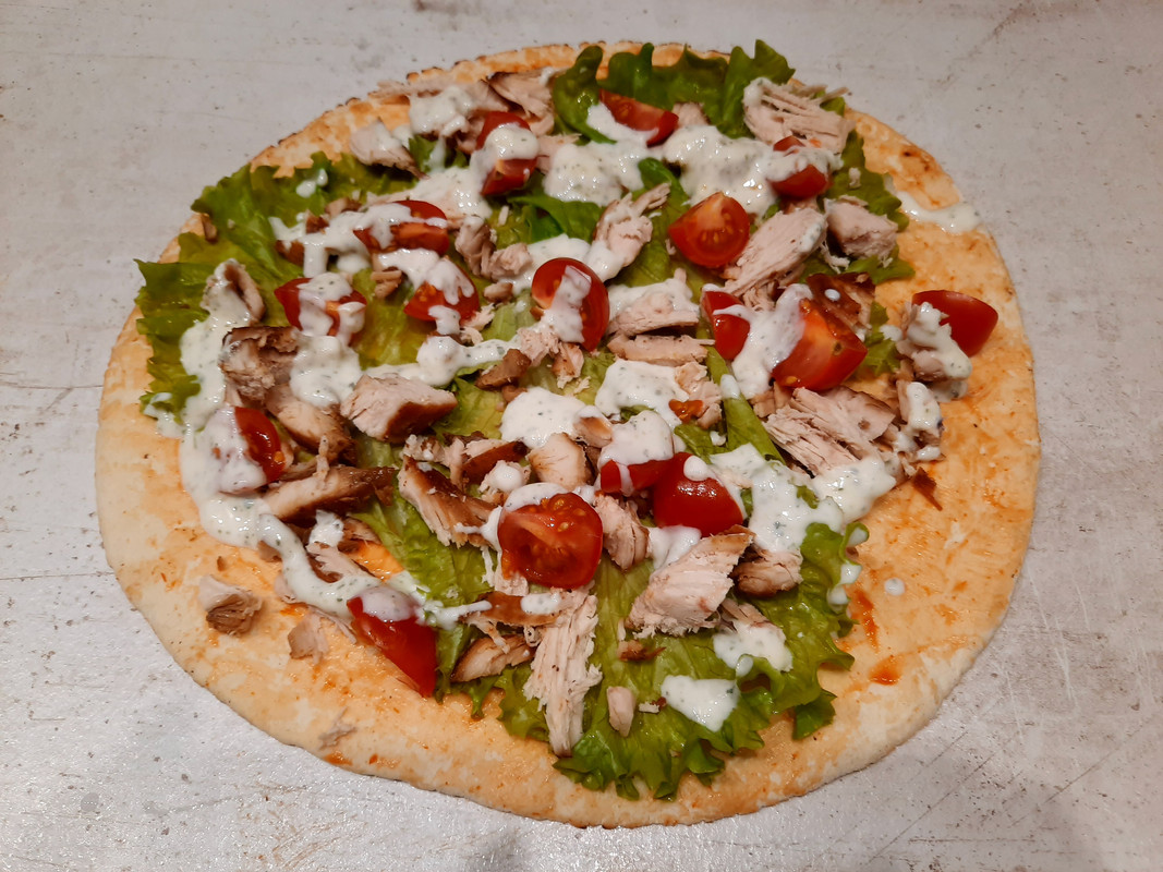 пельмени домашние со сметаной или маслом по желанию, салат огурец-помидор свежий