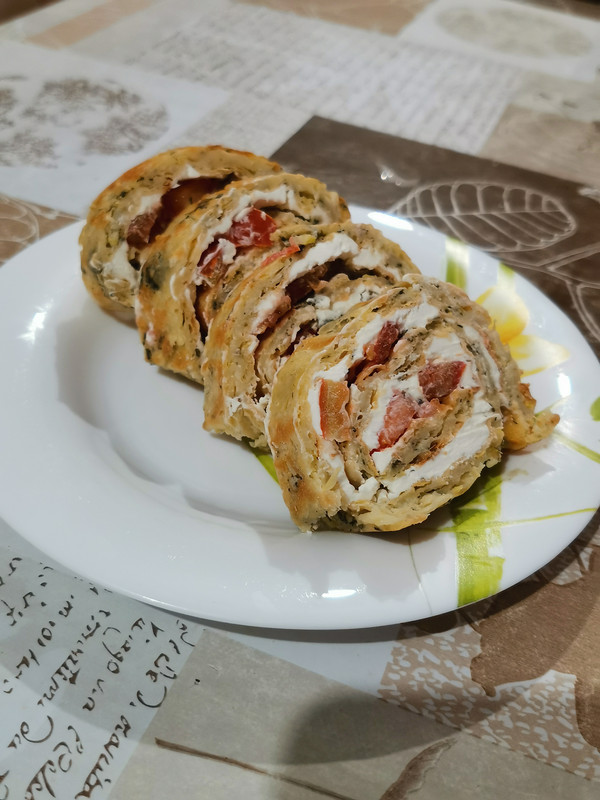 Качабковый рулет с творожным сыром и помидорками