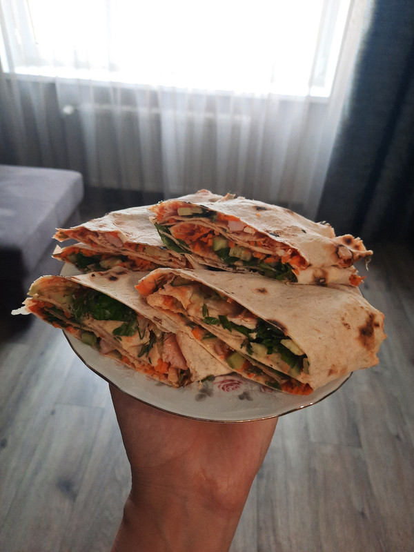 . Отправила Диму за армянским лавашом в магазин, а он кончился у них)))). Пришлось самостоятельно завести тесто и на нем сделать. Хотела на лаваше попробовать. Ну, ладно, в следующий раз...