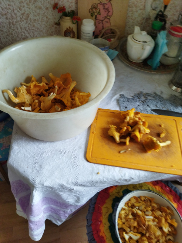 фарш говядина-свинина плюс куча разного - рис, лисички жареные, морковь и лук.